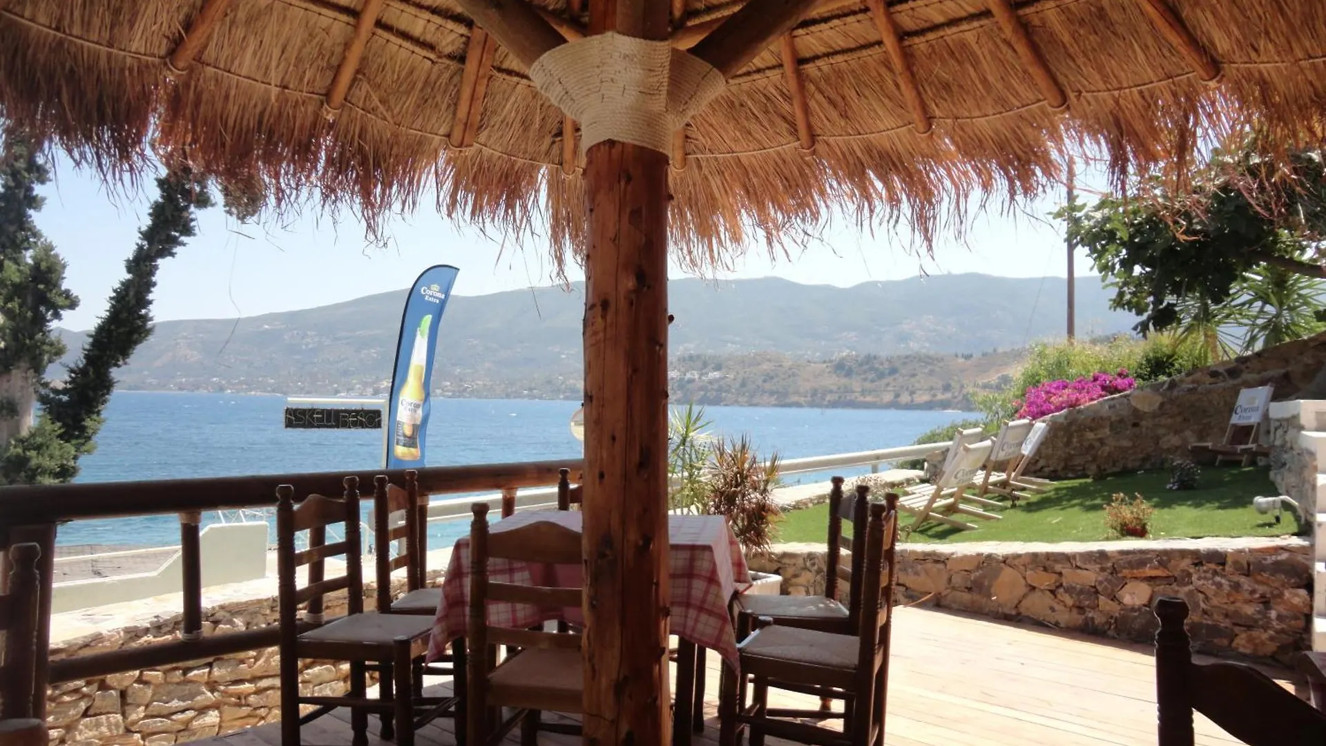 The venue is lined with a coffee shop and bars. You can get to Kanali Beach in a few minutes by car.